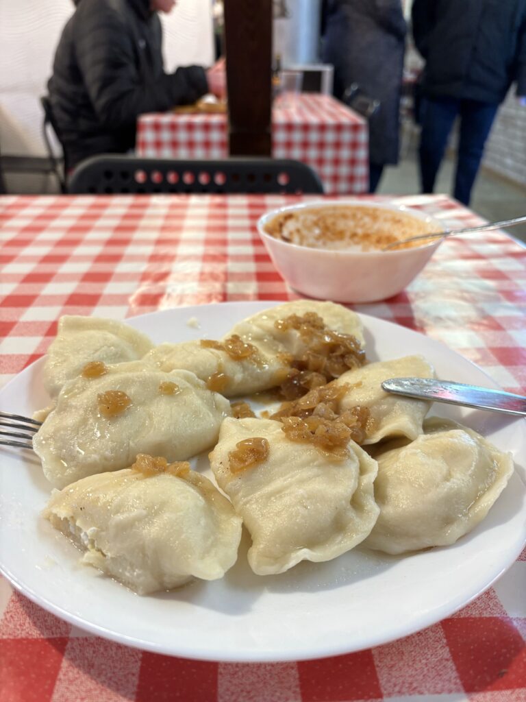 Was nach 1945 geschah, ist einer der faszinierendsten Vorgänge der europäischen Kulinarikgeschichte: Die Polen, die aus Lemberg (dem heutigen ukrainischen Lviv) und Galizien vertrieben wurden und sich in Breslau niederließen, brachten ihre Rezepte mit. Barszcz ukraiński, die rote Rote-Bete-Suppe; Halushky, die weichen Teigklößchen mit Käse und Speck; Blinchiki, hauchdünne Pfannkuchen mit saurer Sahne – all das ist heute in Breslau so präsent wie in Kiew oder Lemberg selbst. Die Karczma Lwowska am Marktplatz ist das bekannteste Lemberger Lokal, ein rustikales Gasthaus mit vorzüglichem Żurek und Bigos in Originalrezeptur.